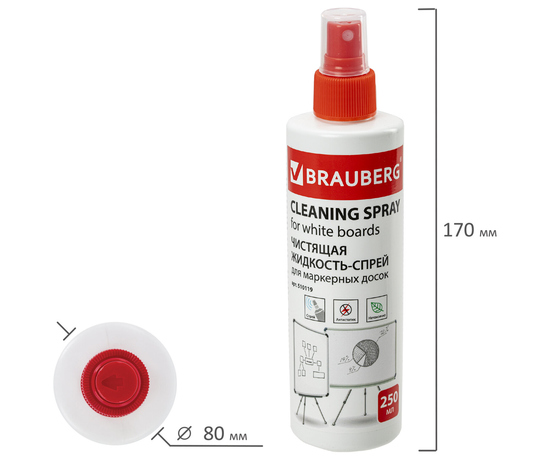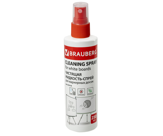 Чистящая жидкость-спрей BRAUBERG предназначена для очистки поверхности маркерных досок.